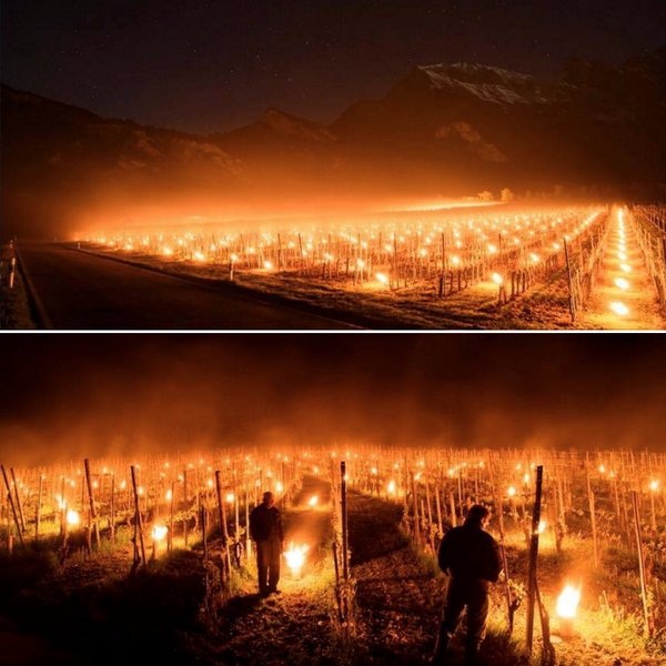 Γι ‘αυτό, σχεδόν λαμβάνοντας υπόψη ένα προγονικό έθιμο για να υπερασπιστούν τα πλάσματα τους, τη νύχτα μεταξύ 26 και 27 Απριλίου οι vignerons κατέβηκαν αμείλικτη στους αμπελώνες, δίνοντας βάση στις αρχαίες πρακτικές που δεν έχουν ξεχάσει ποτέ. Ήταν μια νύχτα φωτισμένη, με τις πυρκαγιές μεταξύ των σειρών, να προσπαθούν να αυξήσουν τη θερμοκρασία των κλημάτων. Πρόκειται για μια αρχαία τεχνική και πολύ θεαματική, που την χρησιμοποιούν από πάντα οι vignerons του Λίγηρα, καθώς και στις πλαγιές της Βουργουνδίας: συστηματικές εστίες τοποθετημένες σε διάφορα σημεία στα αμπέλια. Η εντυπωσιακή και ισχυρή εικόνα που προκύπτει είναι το πιο απτό παράδειγμα αυτής της αιώνιας αντίθεσή του ανθρώπου με τις ξαφνικές συμφορές της φύσης.