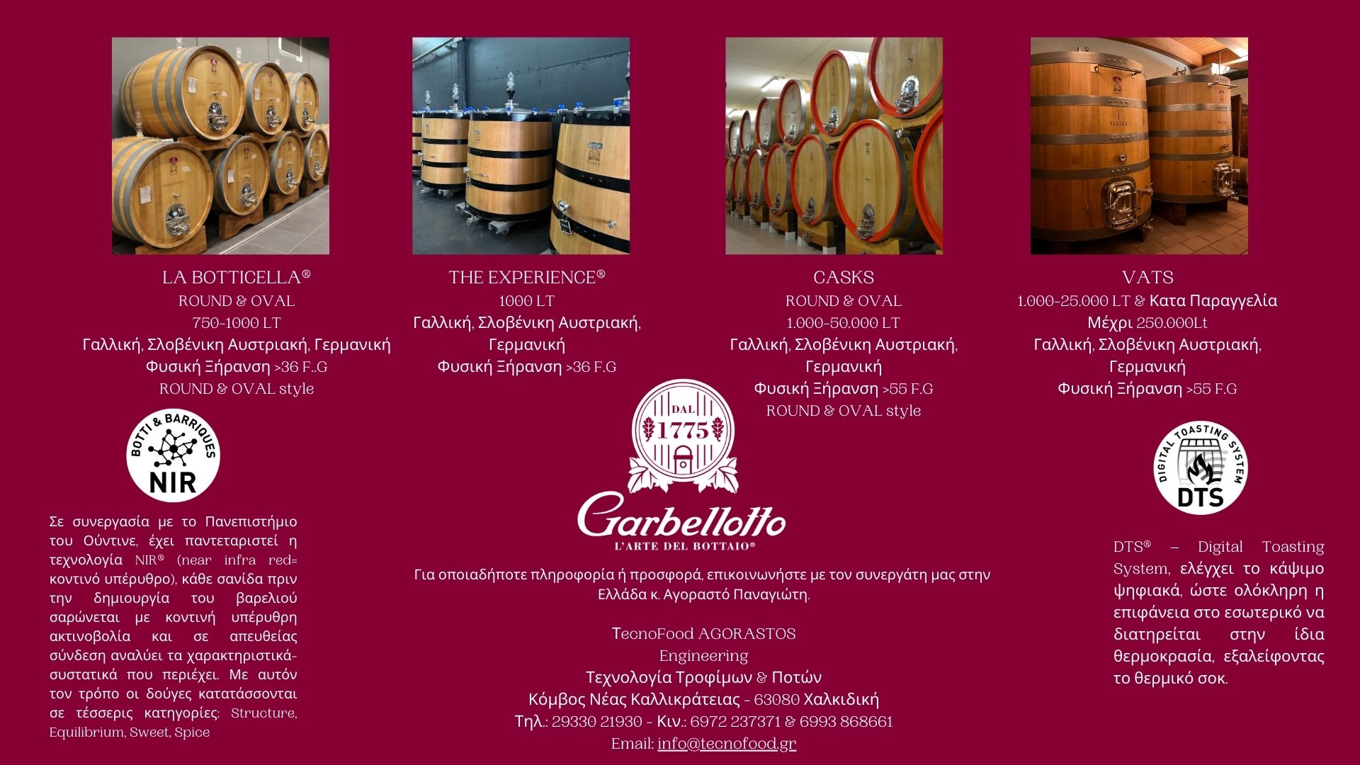 Η TecnoFood Engineering & Oinologos.com by Nikolaos Agorastos : Έχoυμε την χαρά να ανακυνώσουμε την αποκλυστηκότητα με τον πρωτοποριακό ιταλικό οίκο βαρελιών GARBELLOTTO Spa, που έχει γνώμονα την καινοτομία δημιουργώντας 2 πατέντες που άλλαξαν τον τρόπο παραγωγής DTS® και εκτίμησης της ξυλείας NIR®.